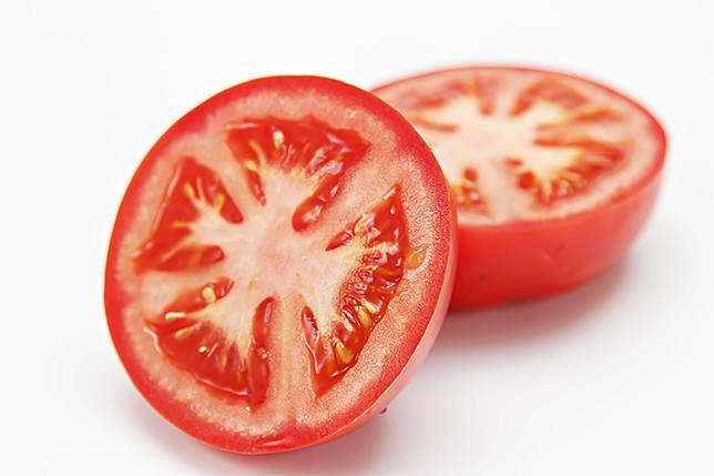 Tomat mengandung lycopenne dan carotenoid yang menigkatkan level kolagen dalam kulit. Zat carotenoid ini juga membantu memberikan perlindungan dari bahaya sinar matahari dan memberikan photoprotection. Sebuah penelitian menemukan bahwa setelah 10-12 minggu sensitifitas terhadap sinar UV atau kemerahan pada kulit dapat mengalami penurunan.